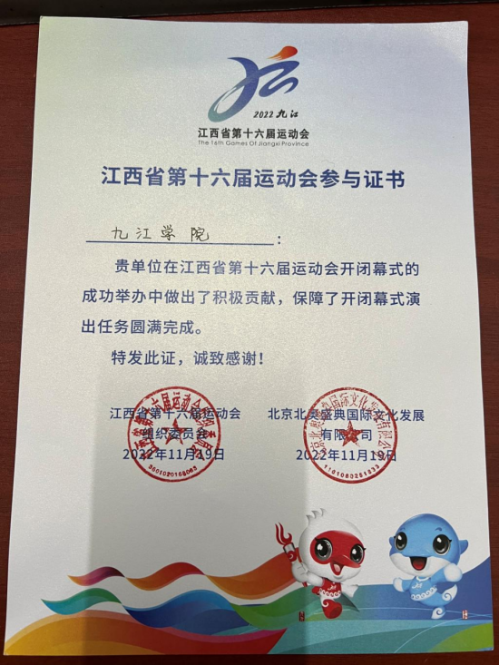 日前,江西省第十六届运动会组织委员会办公室对在本次省运会志愿者服务工作中作出突出贡献的单位进行表彰,九江学院光荣上榜。该校遴选了800名赛事志愿者、770名开闭幕式文体展演志愿者和50名师生后勤保障志愿者,服务省运会顺利开展。