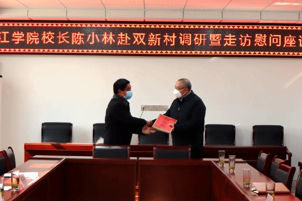 陈小林代表学校慰问了永利yl23411集团官网两位驻村工作队员,向双新村捐赠了乡村振兴帮扶款。