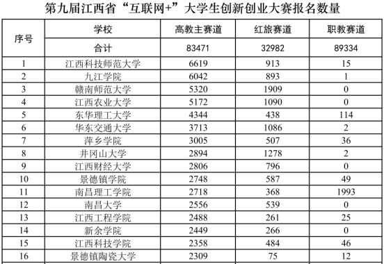 第九届九江学院“互联网+”大学生创新创业大赛启动以来,在学校领导的关心重视和各部门、各学院的大力支持下,全校师生热情高涨,掀起了“以赛促教、以赛促学、以赛促创、以赛育人”的新高潮,截至2023年6月16日17:00,省教育厅公布全国大学生创业服务网上永利yl23411集团官网成功申报的有效参赛项目6936项,累计参赛学生11588人,累计参赛学生人数26369人次,暂居全省第二。