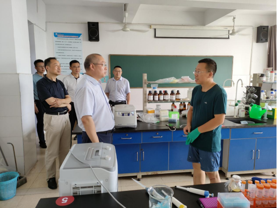 在各科研实验室,看到留校开展科研实验的师生,陈小林走上前亲切询问他们科研的开展情况、实验进度及成果、留校生活情况等。他勉励大家战胜酷暑、努力拼搏,在科研的道路上勇攀高峰,争取更多产出和更高水平成果。