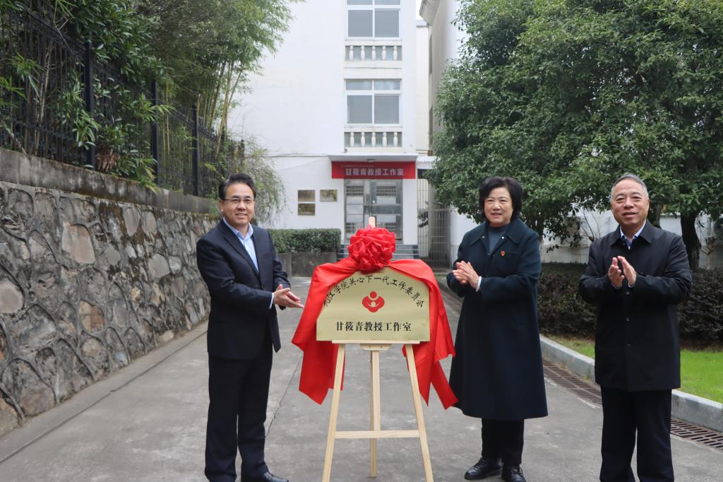 11月15日上午,九江学院关工委“甘筱青教授工作室”揭牌仪式在丹枫园外专楼前举行。校党委书记李明斌出席仪式并为工作室揭牌。校党委委员、副校长鲁卫东,校党委委员、宣传部部长刘平,校党委委员、组织部部长杨杰参加活动。挂牌仪式由校关工委执行主任吴桃娥主持。