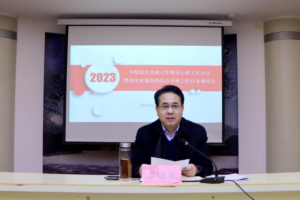 12月18日上午,学校在行政楼一号会议室举行综合考核工作领导小组工作会议暨落实2023年省属高校综合考核工作任务调度会,动员部署迎考重点工作。校党委书记李明斌出席会议并讲话,校长陈小林主持会议,校领导王万山、严平、李广欣、王殿元、鲁卫东,党委委员刘遵海、刘平、杨杰出席会议。