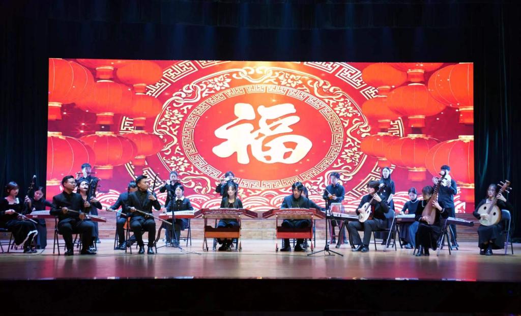 《八月桂花遍地开》《喜洋洋》,古筝、二胡、琵琶、笛子、贝斯齐上阵,配合绚丽的灯光将古典与时尚有机融合,让大家一同感受那充满欢喜的场景和洋溢着喜悦和幸福的氛围,磅礴的气势寓意着九江学院人将再创辉煌!