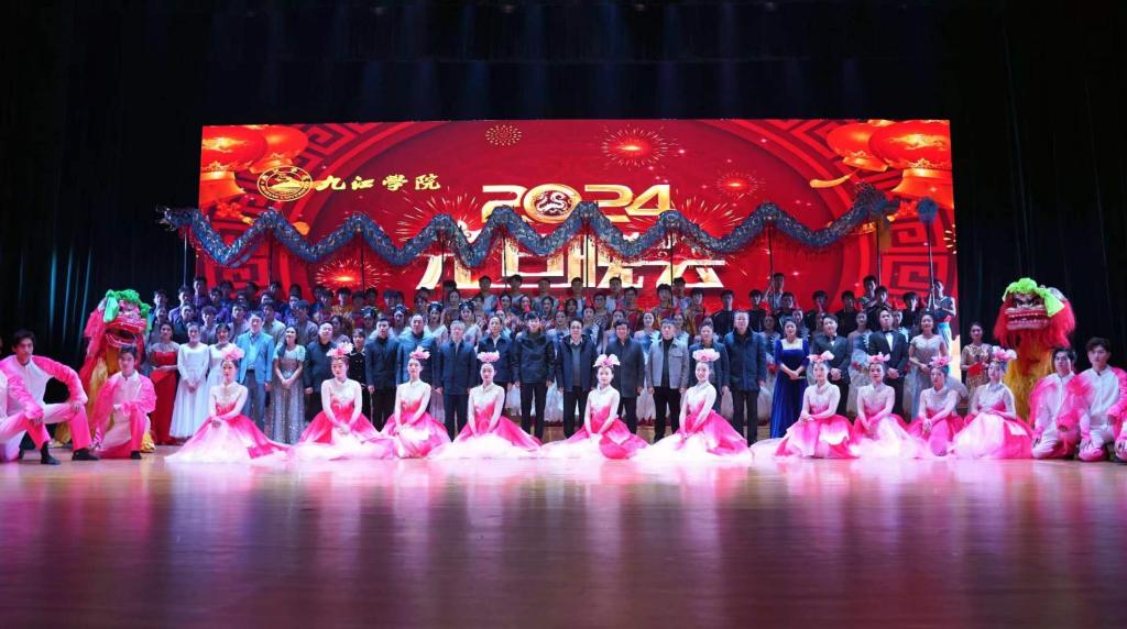演出结束后,领导嘉宾上台与全体演职人员合影留念。晚会还通过九江学院官方微博等平台进行了网络直播。