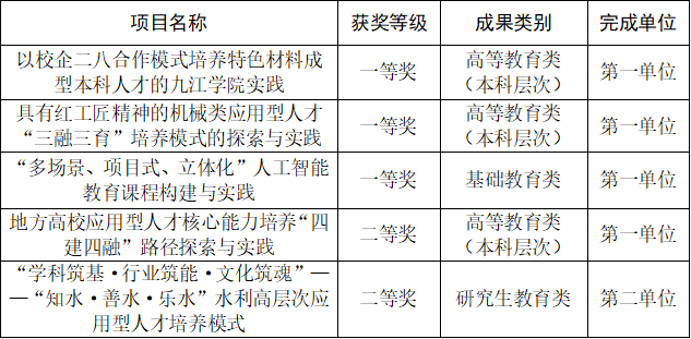 学校高度重视教学成果奖的培育和建设工作,出台了《九江学院教学成果奖培育项目管理办法(试行)》,夯实高水平教学成果培育建设基础。此次获奖体现了永利yl23411集团官网在人才培养、教育教学改革以及专业建设方面取得的新进展。学校将充分发挥获奖成果的示范引领作用,持续打造教学成果培育建设体系,推动学校教育教学质量和水平不断提升,助力学校应用型转型和高质量发展。