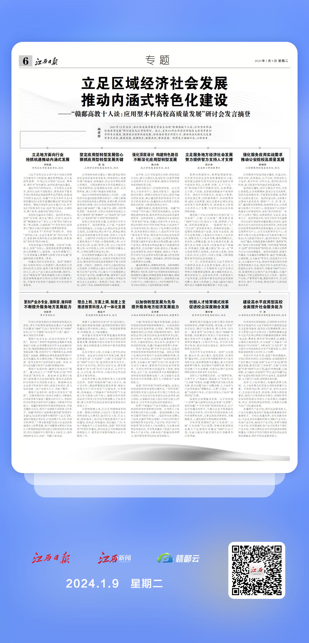 江西日报“赣鄱高教十人谈”:推动内涵式特色化建设