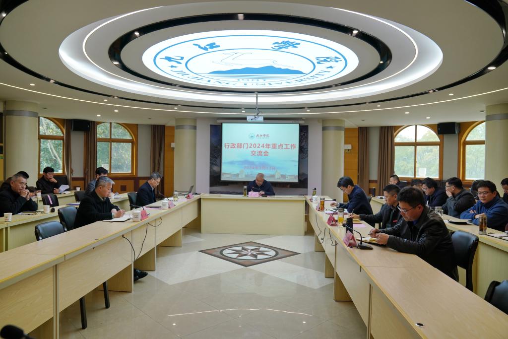 3月13日下午,学校在行政楼一号会议室召开2024年行政部门重点工作交流会议。校长陈小林主持会议并讲话。副校长王万山、严平、查振华、王殿元、李松志、鲁卫东、雷志强出席会议。