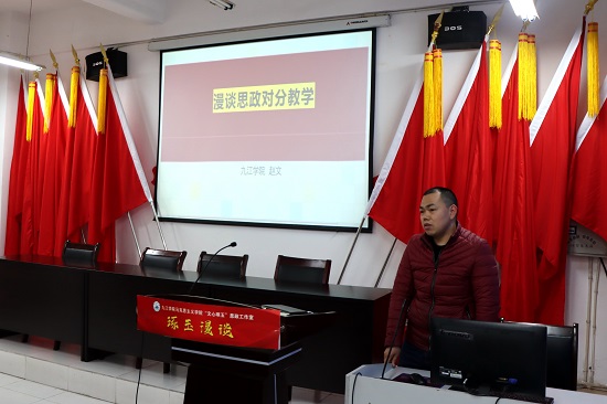 “教育不仅仅是教授学生知识,而应该是把学生培养成一个有灵魂的人,始终把学生看作目的,而不是手段,从而实现师生共同进步。”会上,九江学院“教书育人楷模”、思政课专职教师谢伏华博士分享了来校工作后作为一线思政课教师教育教学的日常,以及多年来积极践行思政人主人翁精神的事迹。