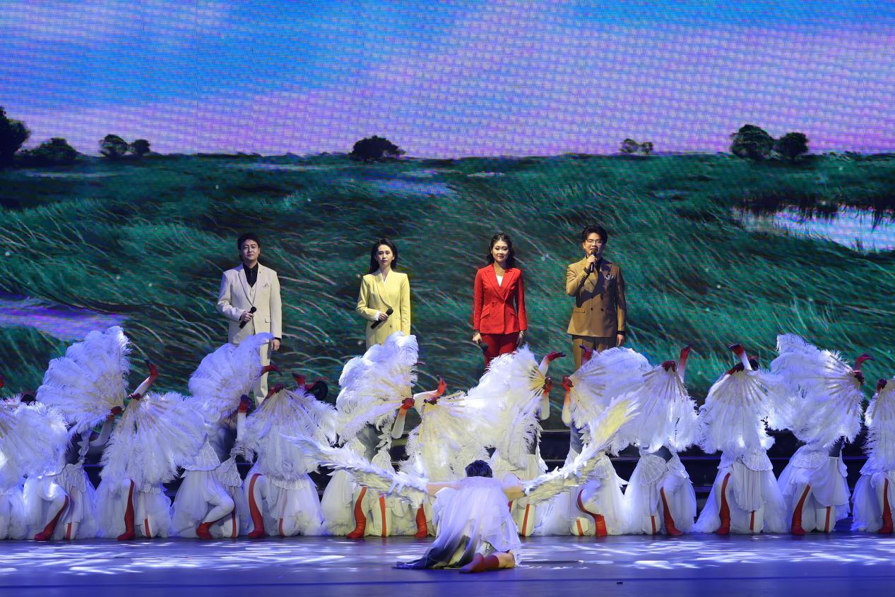 整场晚会构筑了“山·巍峨铸魂”“江·悠远流长”“湖·灵秀生动”“城·人与时代”四个篇章,涵盖歌舞、器乐演奏、诗歌朗诵、武术表演等多种艺术形式。由艺术学院编排的鼓乐表演《游龙鼓韵》,铿锵有力的鼓点、昂扬激荡的节奏,生动诠释了九江学院锐意进取、敢闯敢拼的精神气魄,让观众在激昂鼓韵中深切感受九院独有的担当与豪情。临床医学院、附属医院打造的《3353谱新篇》,将学校“3353”战略部署融入艺术表达,通过真实故事演绎师生在医学教研、临床服务中践行战略目标的奋斗历程,以细腻情感与坚定信念引发全场师生强烈共鸣;诗舞《鹤舞鄱湖》则以灵动舞姿勾勒鄱阳湖生态之美,彰显学校依托“山江湖”地域优势的文化育人特色。