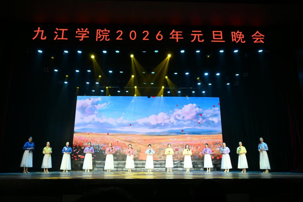 12月29日晚,九江学院2026年“歌舞贺新年 青春谱华章”元旦晚会在学校大礼堂隆重举行。校党委委员、副校长查振华、鲁卫东、雷志强、吴维勇,党委委员刘平、肖国丰,以及现场千余名师生代表、线上云端近5000观众共赏视听盛宴,同贺新年到来。晚会以丰富多彩的艺术形式和充满时代气息的节目内容,为全校师生献上了一场精彩纷呈的文化盛宴,展现了九江学院学子昂扬向上的精神风貌和学校蓬勃发展的生机活力。