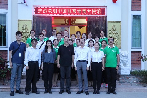 10月13日下午,中国驻柬埔寨大使馆李杰参赞在领事部田玲主任的陪同下,看望了部分在柬埔寨王家研究院孔子学院工作的汉语教师,并与教师进行了座谈。正在孔院访问的九江学院国际交流处王贤淼副处长应邀出席了座谈会。