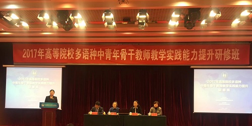 本次研修班邀请了中国外语教育研究中心的教学法科研专家杨鲁新教授、北京外国语大学周燕教授、傅荣教授、黄玫教授等多语种专家,针对多语种中青年教师在教学中亟待解决的教学难题从明晰基础理论、各阶段主干课程的课堂设计、外语教学的测试和评估、翻转课堂及微课等新媒体教学等角度出发,通过专家讲座、课堂观摩、小组研讨、学员代表授课发表等多种多样的培训方式,帮助参会教师切实提高对外语教学的整体认识和课堂驾驭能力,为院系发展和骨干教师培养提供有力支持。