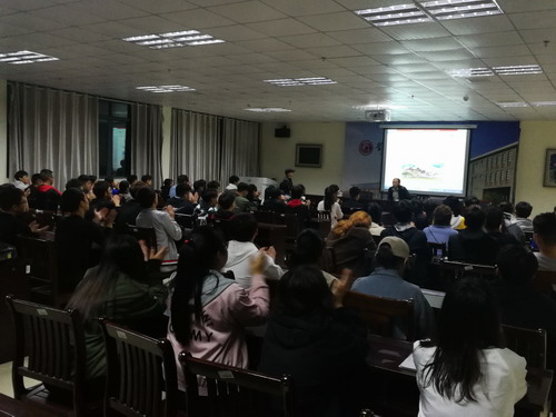 第三部分,陈先生和同学们分享了创作心得体会,并与同学们进行了互动交流活动。此节部分陈先生重点为大家展示了近期在西藏、河北地区时的艺术创作。分别从画面的构图、用笔、用色、画面尺幅、抽象与具象表达技巧等方面,进行了详细的分析和讲解,还为大家集中展示了作品集、画册中的作品,对其中代表性作品进行了介绍,使同学们学习到了丰富的绘画技法表达方法,对绘画表达技法认知性上得到了理解与开拓。最后,陈先生现场耐心地解答同学们提出的问题。并赠送画册给同学们,鼓励他们勤奋学习,勇于开拓、大胆实践、敢做先锋。为中华民族的伟大复兴和中国文化的建设贡献自己一份应有的力量。