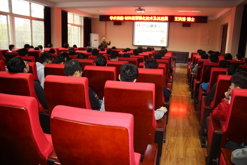 讲座伊始,王洪涛博士以设问“什么是表面强化技术?”、“为什么研究表面强化技术?”等问题入手,详细介绍了材料表面强化技术的概念以及研究材料表面强化技术的意义。材料表面强化技术包括表面涂层技术和表面改性技术,王博士重点阐述了两种技术的诸多方法种类、研究进展状况,使同学们了解到表面科学是研究固体表面的一门新学科,它有着很多应用。