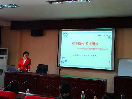 为进一步加强青年教师队伍建设,对标国青教赛水准来提升永利yl23411集团官网教师竞赛水平,5月22日下午第四届全国高校青年教师教学竞赛文科组三等奖、第三届江西省高校青年教师教学竞赛文科组一等奖第一名获得者,江西师范大学陈志华博士莅临学校第十六期名师论坛开展赛前辅导活动,学校90余名中青年教师参加,活动由教师教学发展中心常务副主任漆晗东主持。