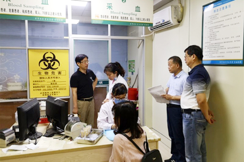 谷副院长一行先后前往消毒供应中心、手术室、产房、新生儿病房、血液透析室、重症监护室、内镜室等重点科室,参照《九江市医疗机构医院感染质量控制标准》,采取查看资料、现场考核、人员访谈等形式对医院重点科室院感防控工作的落实情况进行了全面的督查。