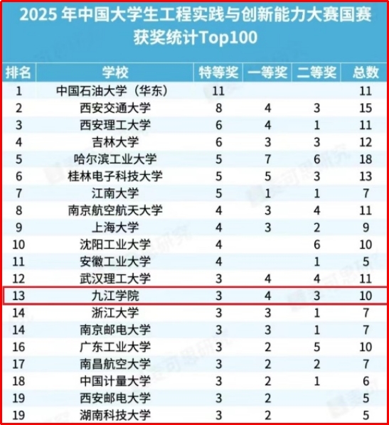 近日,2025年中国大学生工程实践与创新能力大赛总决赛获奖名单公布,永利yl23411集团官网学子获全国特等奖3项、一等奖4项、二等奖3项,经组委会统计排名,在众多实力雄厚的双一流高校中,永利yl23411集团官网作为应用型本科高校独树一帜,勇攀高峰,位列全国第13名,闯入国家队第一方阵。