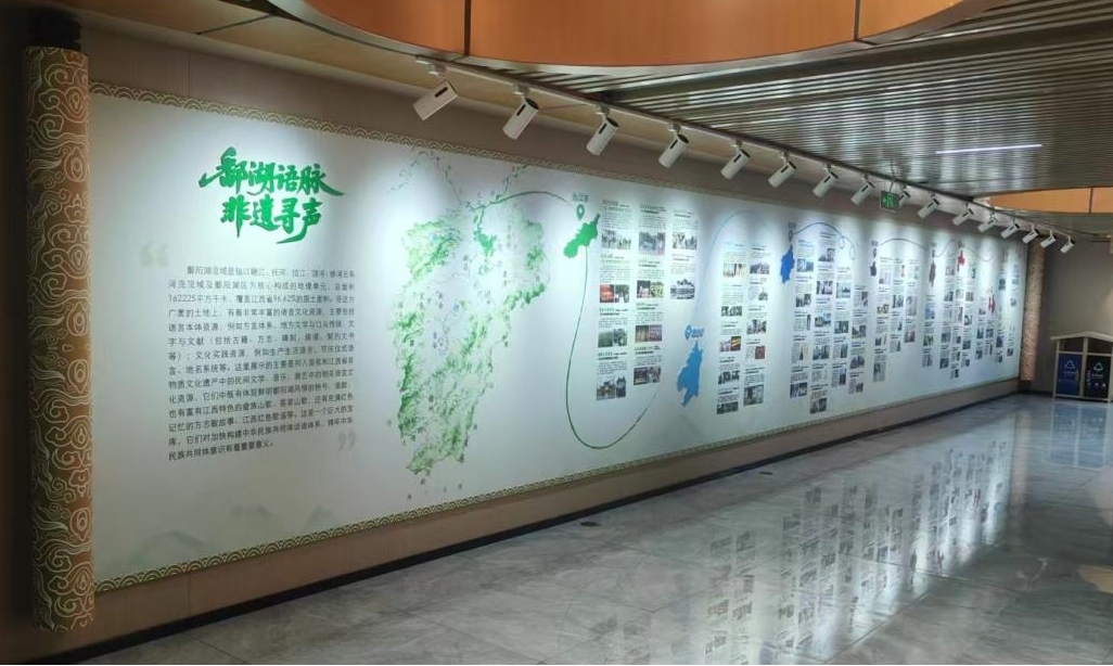 鄱阳湖语言文化展示(教育)中心是一个立足地域文化特色、融合旅游体验与教育功能的创新型平台。中心充分整合高校、政府与企业三方资源,以鄱阳湖流域语言文化为基础,梳理区域语言文字发展脉络,结合芳兰湖景区旅游资源,开发出“芳言兰语”系列文化产品。秉持“让语言可看好看、让文化可感好玩”的理念,综合运用平面图画、立体浮雕、互动课堂等形式,开展语言文化展示与教育。该中心不仅搭建了高校服务地方的文化桥梁,探索了文化遗产可持续发展新路径,也为公众系统感知鄱阳湖文化魅力提供了重要窗口。