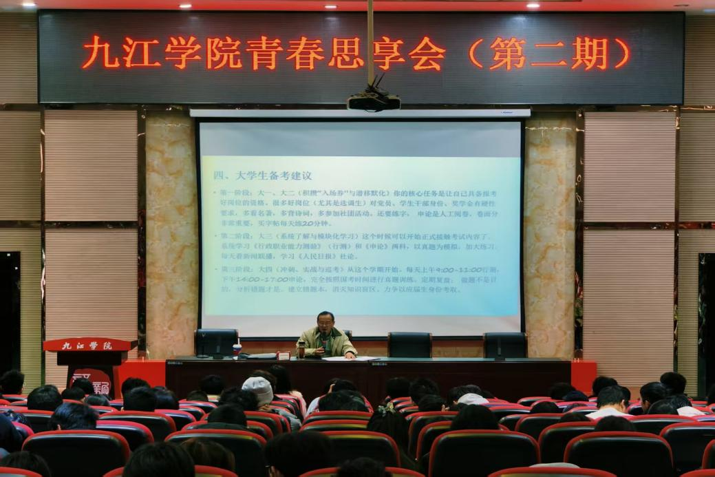 为帮助永利yl23411集团官网学生明确职业规划方向,进一步提升就业竞争力,12月3日,校团委在香远楼报告厅举办以“大学生职业规划”为主题的九江学院青春思享会(第二期)活动。各二级学院学生代表400余人参活动,共同探讨职业规划的路径与方法。